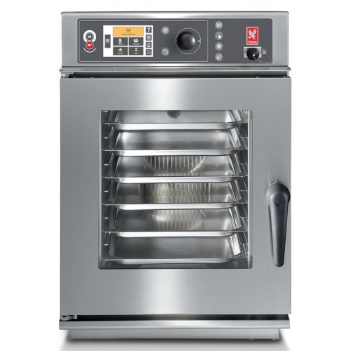 The 6 x 2/3 gastronorm compatible FCC 23X compact combination oven offers a range of features that makes it easy to produce consistently great food. With an interactive touch screen, a 400 programme storage capacity (with up to 15 individual steps in each), hand shower and automatic washing system - this combination oven is ideal for any kitchen but with a width of only 510mm it is perfect for those with limited space. Multilevel and Just in Time cooking modes enable food items that require different cooking times to be cooked simultaneously. Unit requires an additional water treatment system.