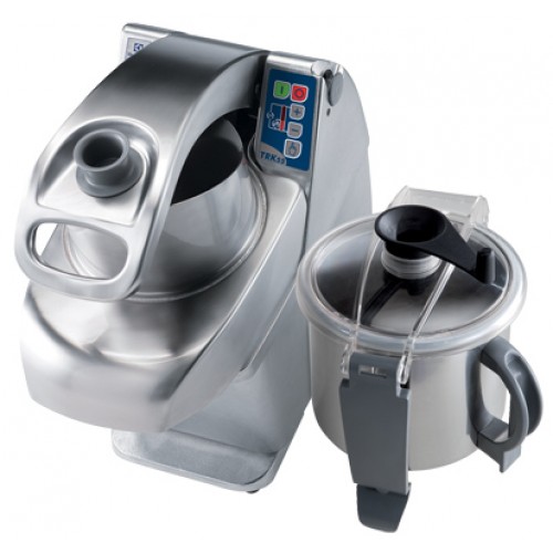 3 in 1 machine: cutter, emulsifier and slicer to slice, grate, liquidise, mix and mince in a matter of seconds. Easily change from vegetable slicer to food processor without any tool. All parts in contact with food are removable, dismountable and dw safe. Incly system to change the motor base orientation (20°) to facilitate loading and unloading operations with the vegetable slicer attachment. Vegetable slicer attachment: Universal vegetable slicer offering more than 80 different types of cuts. Long vegetable hopper (60mm diameter) integrated in the wide 3/4 moon stainless steel round hopper (215cm²). User-friendly stainless steel lever (better pressure control, with less effort for arms and shoulder), designed for right and left handed users. High discharge zone (up to 20cm) for GN containers. Automatic start/stop function will stop the machine when the lever hopper is lifted and will restart automatically when lowered.