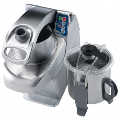 3 in 1 machine: cutter, emulsifier and slicer to slice, grate, liquidise, mix and mince in a matter of seconds. Easily change from vegetable slicer to food processor without any tool. All parts in contact with food are removable, dismountable and dw safe. Incly system to change the motor base orientation (20°) to facilitate loading and unloading operations with the vegetable slicer attachment. Vegetable slicer attachment: Universal vegetable slicer offering more than 80 different types of cuts. Long vegetable hopper (60mm diameter) integrated in the wide 3/4 moon stainless steel round hopper (215cm²). User-friendly stainless steel lever (better pressure control, with less effort for arms and shoulder), designed for right and left handed users. High discharge zone (up to 20cm) for GN containers. Automatic start/stop function will stop the machine when the lever hopper is lifted and will restart automatically when lowered.